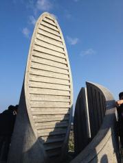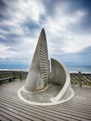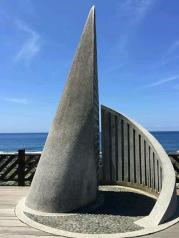 和名声在外,出镜率颇高的鹅銮鼻比起来,真正的台湾最南端就太低调了。和鹅銮鼻相距不远,走过一段掩藏在树林里的步道之后,就能看到一座又像卷起的风帆,又像海螺的建在海边的小纪念碑,这里就是整个台湾的最南点了。