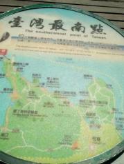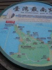 台湾最南点位于东经120.50.0 北纬21.53.59,其实也就是个摆设点而已,不过哪个观海平台还是值得上去的!它前身是隶属海巡署岸巡63大队的,上去观海是一绝啊,哪海天一色的景观让你惊叹!!