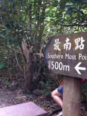 台湾最南点。车子放在停车场,顶着太阳穿越一段大概1公里左右的丛林小路,就看见一个建在木质平台上的水泥地标,地方本来就小,人还特别多,都挤在在一起。