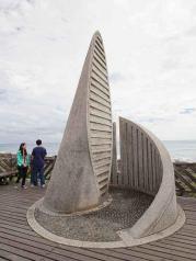 台湾最南端和鹅銮鼻相距不远,走过一段掩藏在树林里的步道之后,就能看到一座又像卷起的风帆,又像海螺的建在海边的小纪念碑,这里就是整个台湾的最南点了,在此可以一览巴士海峡和太平洋交接处的海景。