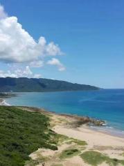 坐在台湾最南端上欣赏美景,特别是海水的层次富有变化,沿海岸线金黄色沙滩远眺,海水从微黄色、浅蓝色过渡到湖蓝色、湛蓝色,眼前一片醉人的蓝色,真想融入这碧蓝的海浪中!