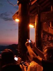 西江千户苗寨木质的吊脚楼依山而建,西江寨子由一条白水河一分为二,桥上的风雨桥一共有五座,一号风雨桥为主道,白天素雅大气,晚上华丽绚烂。如果你能起得来,那你将有幸看到清晨的西江,别于白日里的喧闹,街头的店铺还没来得及开门,只有勤劳的当地人在寨子里走动。太阳逐渐爬上山头,寨子里的炊烟也出来行动。在街头巷尾乱串,跟街边的阿公阿婆学了几句苗语。在苗寨说“咪公”就是打招呼的意思,我爱你用苗语说是“呀啦米”。越来越多人说西江商业化,但其实也是情有可原。越来越多的游客涌入,商业化也是为了管理程序简易化。离开主街的喧闹深入巷子里,还是可以看到很多别样的少数民族风情的。到晚上万家灯火亮起,看灯光在吊脚楼肆无忌惮