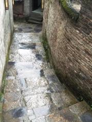 历史中的镇远古镇,交通畅达、商贸兴旺,是黔东南的“边城锁钥”。古街的老式建筑也大都有几百年的历史,青石板铺就的巷道就在建筑与建筑之间蜿蜒向前,缀满斑斑青苔。镇远巷道异常的清洁,不见一丝尘土与落叶。每隔几块青石板就有一条石板上雕刻着缕空的铜钱的图案,或左或右错落在其间。阳光跳过高高的马头墙,或斜或直地射在上面,那光影透过铜钱的图案,亮亮地落在阴沟里,像极了一条穿满了铜板的麻绳,随意地散落在结构一致的青砖深院之间。商贸重镇的镇远因水建城,也因水而兴盛。繁华异常的商业,经历朝代的更迭,历史的变迁而发生了诸多的变化,但是光影中的斑驳印记确实透过千年的时光穿越回了现代,让人颇多感慨。拾级而上,信步闲游,