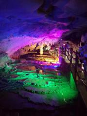 洞天仙境就一个原始隧道,通过去,洞里蓄了水流,可以行小艇,75元门票包含回程船票。洞里面山顶是通的,有个小小的水帘瀑布流下了。洞中高处有个十米左右长的玻璃栈道,几二十分钟就逛完了。