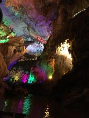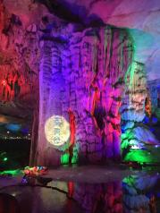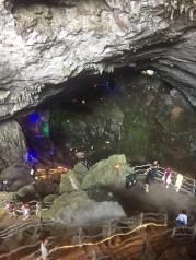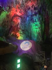 连州地下河,下到洞里,坐船游地下河,大概十多分钟,然后爬坡上坎往回走,一个小时的游览时间,也可以先走路后坐船,有工作人员安排,洞口往下看很震撼、坐船中途声色俱全的瀑布、出口处星罗密布的酒坛子,还有讲解员热情的态度。