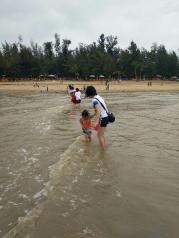 三娘湾确实不适合下水游玩,水比较浑,不像北海那么清,这里的落日洒在海面上,确实是特别好看!我们也看到了著名的三娘石,特别大的三块石头遥遥相望对着大海,个人认为是值得一游的地方!