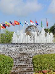 博鳌亚洲论坛永久会址自2001年在琼海博鳌开展第一届会议以来,就已经作为博鳌亚洲论坛永久会址,大门口有万国国旗,里面有各种别墅作为住宿酒店,和会场相隔甚远,需要电瓶车接驳,总的来说还是值得一游的。