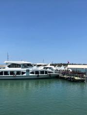 久闻博鳌亚洲论坛永久会址大名,今日终于得见。出发前在网上定了门票,便直奔东屿岛。取票在迎宾大道的尽头右手边的票务中心,车也停在这里,坐电瓶车上岛。整个景区不是很大,一会儿就逛完了。从码头坐船上玉带滩,玉带滩很有特点,一边是咆哮的海浪,一边是静静的江水。一定要准备防晒用品!防晒用品!防晒用品!