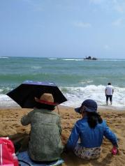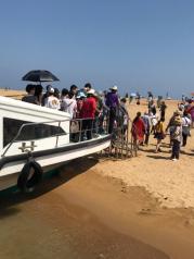 我们先参观了博鳌亚洲论坛永久会址,随后排队上游轮到玉带滩参观。一下游船真的好神奇呀,一边是静静的河,一边是汹涌澎湃的海,玉带滩上的游客很多,还提供一些简易的小亭子,让游客休息,我们在这里吃了一些自带的食品,就开始海边河边交替的拍照,真的是好爽啊。