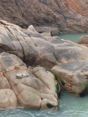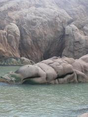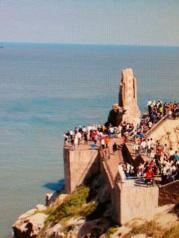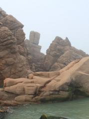 成山头很大的一个景区,分为福如东海,好运角和始皇庙三个部分。从福如东海到好运角可以乘坐电瓶车。我们一早就到好运角看日出,可是天气不算太好,等看到的时候太阳已经升起来了。这里是中国沿海到韩国最近的地方,直线距离94海里,海水清澈,景色优美。