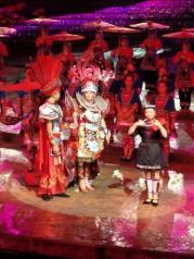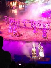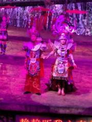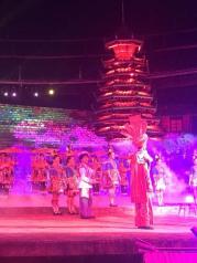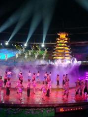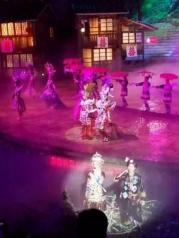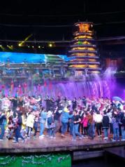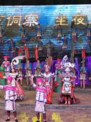 《坐妹》是一场大型歌舞,跟《印象刘三姐》的形式差不多。位置很好找,在网上购票取票很方便。表演很精彩,本来只是因为三江的晚上我们不泡吧没什么好逛的去的,但是没想到表演确实很好看,大体好像是分成了3个还是4个部分,总的来说非常好看!