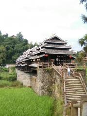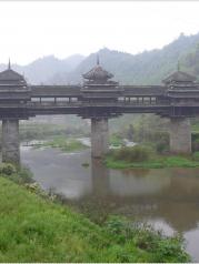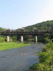程阳风雨桥是中国惟一被列为全国重点文物保护单位的侗族风雨桥,是侗族建筑艺术的杰出代表。风雨桥坐落于广西三江侗族自治县林溪乡马安寨。这座桥比广济风雨桥规模小一点,但景色一点不差。据当地人说,今年雨水小河道干。