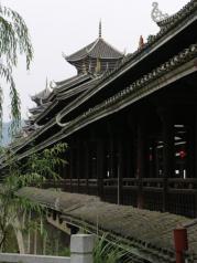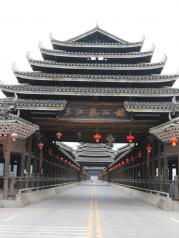 程阳风雨桥又称永济桥,距三江县城古宜镇20公里,是侗寨风雨桥的代表。这座横跨林溪河的大桥,为石墩木结构楼阁式建筑,集桥、廊、亭、三者于一身,整座桥不用一钉一铆,以榫衔接,堪称中国木建筑中的精品。