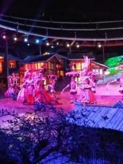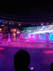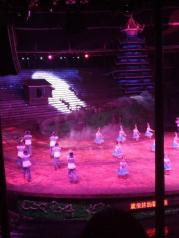 《坐妹》表演很精彩,本来只是因为三江的晚上我们不泡吧没什么好逛的去的,但是没想到表演确实很好看,大体好像是分成了3个还是4个部分,民族风光,少男少女的爱恋,夜晚相会,嫁娶之类的。除了嫁娶的部分服装比较山寨(我个人印象,不是很了解)以外,其他服装,灯光,特效,舞蹈,还有阿妹细细小腿(羡慕死我了。。。)都让我觉得很赞!