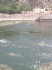 河南三门峡大坝利用了这三个天然岩石基座建立的大坝,所以地基稳固。这时的雾气开始散去,河中心的中流砥柱清晰可见,黄河水由于这里的拦截变得清澈,远没有壶口的咆哮和混黄。