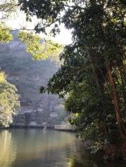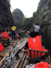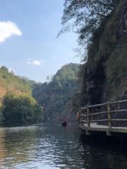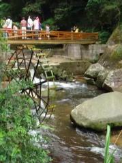 九龙潭的话,主要就是竹排,竹排上游览大概1.5个小时,略无聊,风景虽然不错,但是看久了也觉得有些疲乏,我当时就差点睡着了。 快睡着的时候我就跟竹排师傅说,让我划一划,可能太惹眼,于是我们竹排和其他竹排打起了水仗,结果就是头发衣服都湿了,不过一解之前的乏困,倒也添了些乐趣。 需要提醒的是,在九龙潭,如果要打水仗,最好多备一套衣服,它那里有专门的换衣间;其次,虽然竹排已经买票,但是竹排师傅都会示意索要小费,有的直接跟竹排途中有无介绍关联