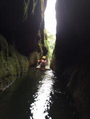 九龙潭门票包括门票、车票、竹筏票。工作人员态度很好,筏工服务到位,一路上不停的介绍,还献歌一曲,当然最后收了小费,每人10元,可微信支付。九龙潭是静水,筏子悠悠的在水上滑过,安静美丽。下竹筏后走20分钟就可到出口了,一点都不累,适合老人孩子。如果有兴致还可自己沿栈道游走一番。景区还有一小段玻璃栈道,可是水汽太大,玻璃下边全是水滴,什么也看不出,当然也就没有收费了。九龙潭不错,值得一游,在里面流连了两个多小时,然后景区门口等车去上清溪,不用担心没车,工作人员会安排景区车送你的。
