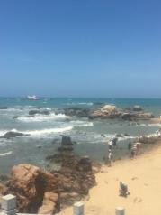 出发前在同程买了天涯海角两张票,直接在散客通道刷二维码就可以进去了。进去之后从广场直走然后右转往天涯石去了,路上直走沙滩经过几个小景点;天蓝蓝,水蓝蓝,只可惜海角石要坐船才看得到。景色非常好,天涯石非常多少人排队照相。有一点就是 海角石找半天才找到,原来在背后的最远处。如果不是下雨浪大的话 一定很多人排队合照。