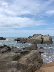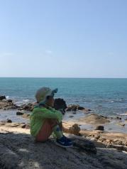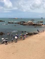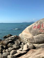 在网上买了大小洞天的门票,价格比较实惠。这里环境很美,跟海月广场那边的海不一样,这里礁石比较多,建议穿凉鞋下水不然会划伤脚。海水很蓝很漂亮,拍照的好地方,有很多婚纱摄影都在这里取景。带儿子慢游这里很惬意。山不高慢慢爬上去不会感觉累。
