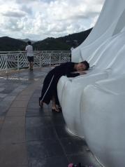 南山海上观音值得一看,人特别多,那南海观音特别壮观,来了觉得没来错地方。离大小洞天也近一天可以去玩两个地方。离天崖海角和西岛也不远,公交很方便。具体路线记不清了,总之在南山寺站下车一路向上走,返程的时候从寺庙中间下来就能看到了。