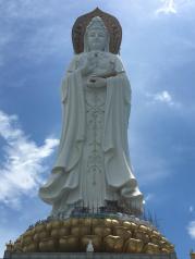 南山海上观音值得一去,真心是一项非常宏伟的三面观音造像,莲花座下为金刚台,金刚台内是面积达15000平方米的圆通宝殿。好壮观,佛脚下的景色太美了!如果只是看观音的可以不用买游览车的票,走过去就好,土豪随意!