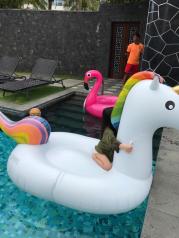 带老携小住在亚龙湾美高梅的酒店,酒店有自己的沙滩,有免费的挖沙玩具,沙子比较细,酒店给小朋友互动多,每个时段都有不同小活动,女儿喜欢看小丑的气球秀和工作人员的泡泡秀,周边吃东西也很方便,非常值得一游!