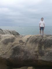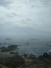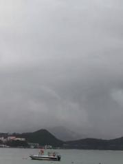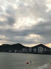 来大东海的时候赶上台风,连下海都不行只能看看,风景不错,亮点是傍晚在海边吃饭的时候天空和大海突然变成了很浓很漂亮的蓝色,就像被颜料染了似的,我看到这景色立刻放下筷子拿手机把那一刻拍了下来。