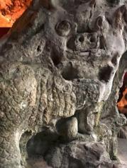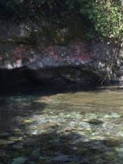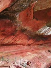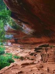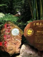 红石野谷以红色蜂窝状的丹霞壁画石刻长廊为特色景观,那如佛、如蛙、如鹿等各种奇形怪状、千姿百态的红石与桫椤,茂密的竹林、 清澈见底的溪泉瀑布,仿佛把人带到了原始、自然、幽静的侏椤纪时代。