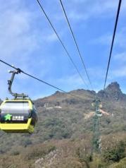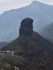 梵净山是一座佛教名山,主要是看山上的寺庙和奇石。由于天气的原因,登山步道可能会封闭,只能坐索道上山,再走20分钟到老金顶、看蘑菇石,然后去红云金顶。上红云金顶的路很难走,要手脚并用。