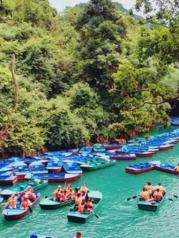 鸳鸯湖位于小七孔景区的核心,是一个森林中的美丽湖泊,必须购票划船,才能体验鸳鸯湖的美!游人参与度很高。这里要单独买票,但相比体验感受,票价不贵。一定要来这里划船!这里是小七孔的中间节点,有很多小吃,在这里午餐很不错!
