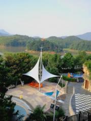 茗阳汤泉环境美,温泉♨️舒服,建在水库半岛上,三面环水,不远处有山,可以坐游船,适合夜跑、晨跑,可以爬山,休闲度假好地方。赞!周末去的,在网络上定了3张票,非常实惠!