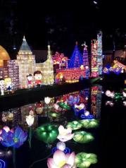 上海城隍庙的灯展已经布置得差不多了!趁着灯展试灯不要门票的时候…冒着小雨溜达了一圈…年年都有灯展…根据主题不同主办单位会应景的搭一些灯…通俗地说就是:接地气… 今年是猪年,主办方弄了许多猪的造型来哄大家一乐! 今年灯展门票50元…有点贵哦!而且到时候会人挤人…不过大部分是外地来沪游客…这几天不要门票的时候,看试灯的上海本地人多…基本上听上去都是讲上海话…