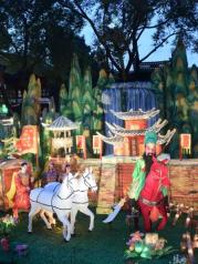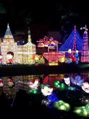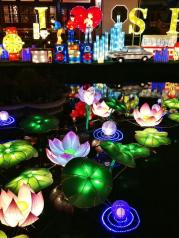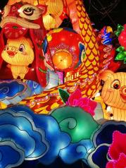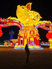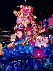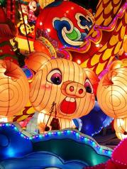 一年一度的城隍庙灯会如约而至,生肖猪富贵吉祥的寓意使得今年的花灯主角更加喜气洋洋,一只只卡通猪一副猪圆玉润的模样,似乎能给游客带来了猪笼入水似的滚滚财源。九曲桥湖面上的花灯有别于往年历史典故的主题,改头换面一组展现新上海高度的建筑彩灯颇让人惊喜,我们爱这座城古色古香的一面更爱上这里日新月异的上海速度。