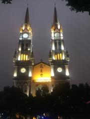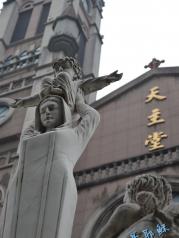 塔下就是城隍庙 步行街 ,注意,此步行街与上海城隍庙 步行街 不同,以各种衣物服饰等等为主,搀有不多的吃食,但好像宁波的特色不多,于是没有多逗留,直接向下一个目标前进。步行几分钟,到达药行街天主教堂,宁波的寺庙和教堂很多,寄托着人们的精神信仰。