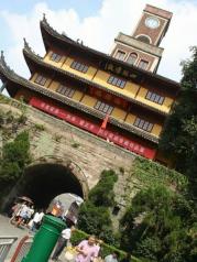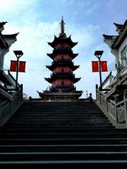 城隍庙的庙现在已经不开放了 就只剩下商业街 看起来就是小商品市场 想淘纪念品的可以来看看 商业街路口有家小杨生煎 鲜虾馅的很好吃 牛肉粉丝汤推荐! 商业街一个出口正对着天封塔 门票5元 学生半价 可以爬一下塔 塔共7层 从窗口俯瞰宁波