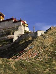 早在来西藏之前,忘记了看了哪一本书曾经提到过桑耶寺和青朴,都是那么清静,神圣,有灵气的地方。有人曾经说过桑耶寺的名称很有诗意,桑耶与上耶相似。进入桑耶寺,顺时针往里走,首先见到的是主殿。著名的三种建筑风格集为一身的主殿。藏,汉,印,三种风格结合,每一种风格都有它的文化背景和历史,那么多年来,传承下来的就是眼前这个有灵气的桑耶寺。桑耶寺也被称为''西藏第一座寺庙''。这一天也是我在西藏这么多天来,第一次感受到佛教的历史文化,感受到佛教的精神,感受到那份心灵的清静。进去后围绕着顺时针走一圈,但内部不能拍照。外围都是转经筒,沿着外围,手转转经筒,看着左边的壁画,历史的痕迹。