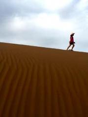 库木塔格沙漠景色不错只是觉得太商业化了一点没人情味。车陷进去后拖个车要一千。也不友情提示不能脱鞋上去。去的时候感觉沙子不热。可是下来时脚就烫的不能沾地了。辛亏租了一个滑沙板走几脚站到滑沙板里。根本就没人管和提示。感觉都走不出来了。对了水一定要带够。我们两个小时每个人基本上喝了六瓶水。