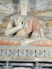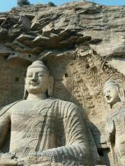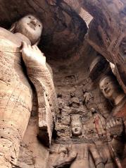 云冈石窟交通比较方便,乘坐公交可以到达,下来要走一段路进景区。云冈石窟的洞窟相对龙门石窟要少很多,规模也要小很多,这大约与北魏迁都及其历史地位有关,但部分洞窟保存相当完好,佛像及壁画色彩艳丽,造型多样,值得观赏。