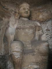 云冈石窟不错,同事说最美的是5窟6窟,果真如此,洞窟内全是彩绘,虽有缺失风化,但从现状来看已经能想象到以前是有多美,可惜为了保护文物不让拍照,只能用眼睛记住了。再往后走不远就是代表性的石窟佛像了,头部像是修复过,整体看还是很壮观的。