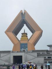 法门寺位于陕西宝鸡扶风县城北10公里处的法门镇,东距西安市110公里,曾经看过一部纪录片,叫《千年菩提路》,里面就讲到了法门寺,说是1981年8月盛夏的一道闪电击倒了陕西扶风县法门寺宝塔,也就此开启了一个埋藏千年的秘密。法门寺里有太多佛教的宝藏,其安置的释迦牟尼的舍利子更使法门寺成了信者仰望的佛门圣地,由于其宝物众多,值得花时间好好一看,因为太知名,也衍生了许多问题,比如佛光大道上的募捐。。居然还可以刷卡,让人不禁瞠目结舌,难道佛教的香火钱也与时俱进和商场一样要刷卡买单了么