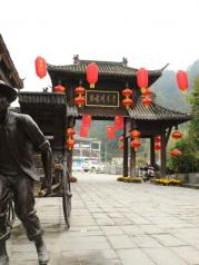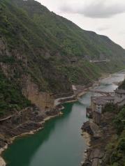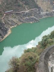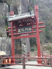 石门栈道——按指示牌非要把车停在河的西按,然后步行半个小时才到主景区。而这一段显示穿过一个商业街,又有一座假山,再又是一段水泥路,两边雕着十二生肖之类的像来充数。最后终于能看到石门水库的大坝和栈道了。从大坝穿过即景区的出口。要是从河东岸进来半个小时就逛完了。