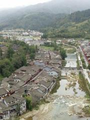 陕西宁强县青木川古镇,位于陕,甘,川交界处,西连四川省青川县,北邻甘肃省武都县、康县,素有“一脚踏三省”之誉,“512”汶川大地震导致长800多米的“回龙场”古街也遭到破坏,现在的古街是按照古镇整体风貌维修而成的。