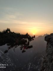 夜爬华山,11:40出发到北峰大概凌晨3:40,一路慢慢走偶尔停下来吃点东西喝点热水,也没觉得特别冷,山上热水一杯5元,导致背上去的两瓶矿泉水原封不动的带下来山,所以如果不是大夏天爬山,带个保温杯夜爬还是很不错的选择,喝了全身都不冷了。带了暖宝宝,在过苍龙岭的时候用上了,这段风很大,夜里特别冷。6点左右到东顶峰,等了一会6:15开始逐渐天亮了,运气不错看到了日出。然后离观景台100米就是鹞子翻身,早上索道人还没上来,所以都无需排队。这个需要单独交30块保险带钱。玩完鹞子翻身立马去长空栈道,只有夜爬才能一大早赶在大部队前慢悠悠的拍照。然后去南峰,西峰,最后西峰索道下山。总体来说觉得不算难爬。只要