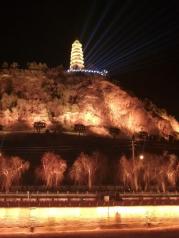 “几回回梦里回延安,双手搂定宝塔山”,著名文学家贺敬之饱含热情的讴歌了宝塔山在中国人民心目中的神圣地位。宝塔山古称嘉岭山,位于延安城东地,延河之滨,在山上可鸟瞰延安整个城区。因山上有塔,故通常称作宝塔山。它是历史名城延安的标志,是革命圣地的象征,是延安市的标志性建筑,是游览延安的必去之地。