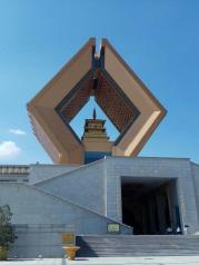 跟着一日游去的法门寺,做电瓶车还花了近半小时去看新塔的佛指,由于跟团有时间限制,做电瓶车可以节省时间,自己去玩也可以慢慢逛逛。 新馆部分可以用大而空洞来形容,一路过去两边有巨大的金色佛像,其他除了佛指真骨没什么特别的,而且佛骨离得太远,去了只能远远看一眼。老寺庙里地宫有另外三枚影骨,可以走进细细观看。 随后去了老寺,看了地宫和两个展厅,里面的东西不太多大部分都收在库房了,但展品很精美。如果自己去可以安安稳稳慢慢看,跟团只能走马观花随便逛逛了。去之前最好看一下法门寺的纪录片,再看就很有感觉了。 老寺庙里面有部分展品的复制品,价格昂贵制作精美。 参观之后出口处需要绕过很长一段距离,除了餐饮还有各种