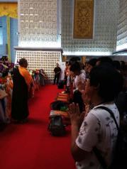 这是个特别的日子,我在扶风法门寺拜谒了释迦摩尼真身指骨舍利,参加了舍利降入地宫的仪式,同时也为有缘见到此点评的朋友们祈福平安健康。 法门寺建于东汉,兴盛于隋唐,是唐宋时期的皇家寺院,现存放有世界唯一一枚释迦摩尼指骨舍利。每月只有初一、十五及节假日的10点至16点才对外展出,所以随机参观的游客能亲眼目睹舍利的概率小于站在大本营看到珠峰的概率。 伴随着僧侣和信众唱诵的佛经声,舍利塔以每秒5厘米的速度降入地宫,我恍惚觉得是在送别一位亲友。人生旅程中,陪伴或长或短,难免离别,能再次见面都是缘分,即使永别也是常态。 随着舍利塔完全没入地宫,我与佛祖的一面之缘戛然而止。 所有信众都虔诚的拜了三个长头,个个