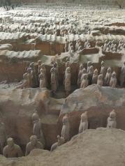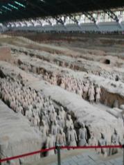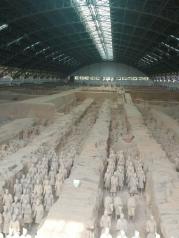 兵马俑作为西安甚至说中国最有名的景点之一,妇孺皆知,每天的人流量绝对是超乎想象,也吸引众多外国游客前来一睹世界第八奇迹风采。场馆分四个部分,一二三号坑和青铜车马陈列馆,50年前当地农民老杨偶然打井发现了兵马俑,揭开了一段传奇,现在当年打井之处仍可寻。一号坑是主坑,展现的是步兵部队,我们从电视、画报看到的兵马俑形象均是来自这里,也是景区最主要的参观点,可以多花一些时间参观了解,泥俑形象栩栩如生,据说当年出土时都是彩色的,可惜当时技术仍不发达,不具备抗氧化的设备能力,出土后几秒时间色彩就灰飞烟灭,成了我们今天所见的样子。二号坑是由骑兵、战车、弓箭手组成的特种部队,但并未大规模挖掘,只能看着有限的出