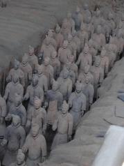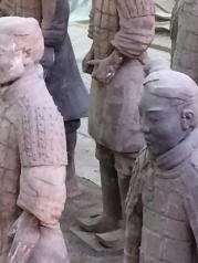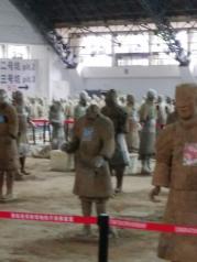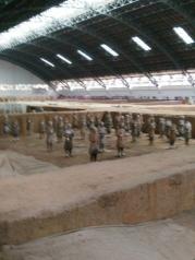 到西安兵马俑是必须要看的,从火车站东坐公交游5,终点站即到,票价7元,非常方便实惠。里面主要三个坑和一个阵列馆,一号坑最大,景区内有电子导览器可租,租金30,还是值得的。从兵马俑出来还可坐免费的摆渡车去秦始皇帝陵,那里基本未开发,面积较大,可以15元坐景区内的游览车。票价有点小贵,兵马俑里还有早期的门票展出,30年前门票价0.1元,现在150元,这比涨幅比房价还高。