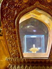 西安的名寺现在当然以法门寺为最,因为举世闻名的佛骨存放在这里。进入法门寺景区(门票120元/人),首先看到的是金碧辉煌的法门寺文化景区佛光大道,其次是47米高的法门寺宝塔,第三是法门寺博物馆,以及安放着真身舍利的合十舍利塔。 我们步行去舍利塔,走的我好累(出来我和容17乘坐小车出来10元一人,如果买车票每人30元来回)。