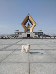 轩辕庙也称黄帝庙,由轩辕庙和祭祀大殿两部分,建筑为全麻石结构,气势雄伟。内有黄帝手植柏,高20余米,苍劲古朴,像个巨伞,另有多株古柏,相互掩映。我们缓缓走到祭祀大殿,感受了天圆地方。